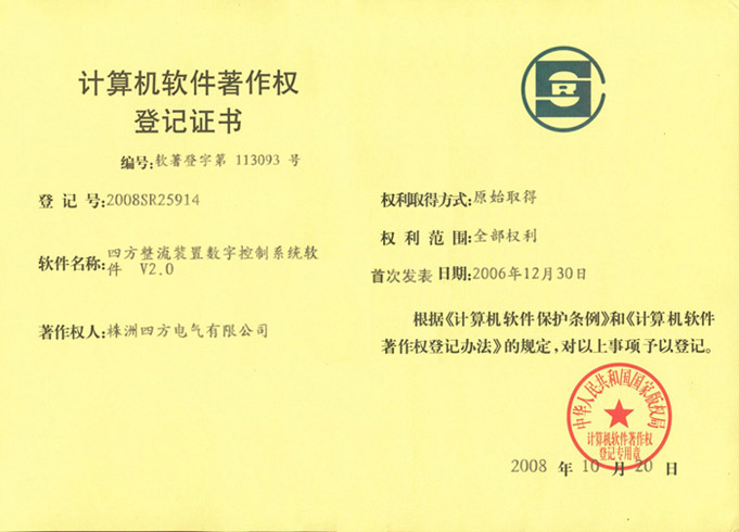 計(jì)算機(jī)軟件著作權(quán)登記證書(shū)(整流裝置)